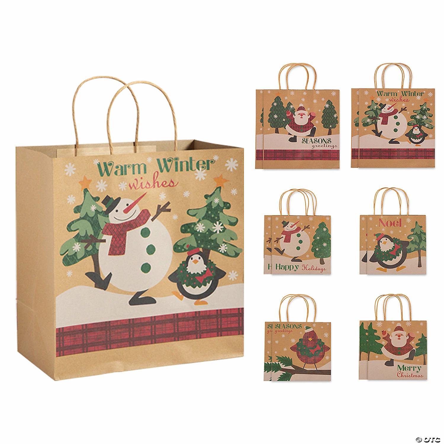 β’ Easy Gift Wrapping: These sturdy gift bags are suitable for holding a variety of presents and come with easy-to-carry handles. They make wrapping any gift easy breezy!β’ Ready to Gift: With several gift bags on hand, youβll never be caught unprepared when itβs time to wrap a gift again!β’ Reusable: Go green with this eco-friendly gift bag! They could even be reused for future gifts.Product Description:All the holiday gift bags you need in one assortment! Our sweet kraft paper Christmas gift bags feature six heart-warming wintry designs that make them perfect for easy present wrapping. With festive sayings including, “Seasons Greetings”, “Warm Winter Wishes”, and more, these durable gift bags make spreading yuletide cheer easy. They look gorgeous when you scatter them around the Christmas tree! Assortment may vary.Size: Medium, 8 1/2″ x 4 1/2″ x 8-1/2″; large, 11″ x 6″ x 11 1/2″Quantity: 12Material: Kraft paperΒ© OTC