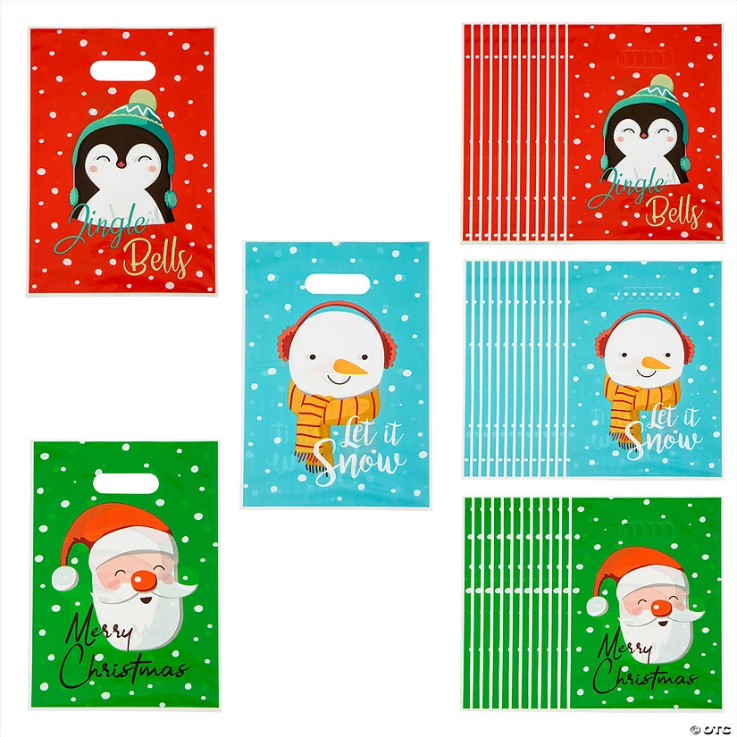• Sweet Style: Display your delicious delights or party favors in style with these fun bags! You can make a decorative statement at any event with these bags and a few treats.• Travel-Friendly: Once the party is over, your guests will be happy to take home your favorite cookies, cake pops, cupcakes or other baked goods in these easy-to-carry bags. • Says Thanks with Sweets: Are you looking for an easy way to thank the people in your life? These multipurpose bags filled with great snacks are a sweet way to spread appreciation among party guests, students and teachers, or employees!Product Description:Looking for fun and festive Christmas party favor bags? Featuring classic holiday icons like a snowman, Santa and a penguin, they’re the perfect size to slip in Christmas candy and holiday toys and treats! Find your Christmas party favors throughout this site! Plastic. (3 dozen per unit) 8 1/2″ x 12″Size: 8 1/2″ x 12″Quantity: 36Material: Plastic.