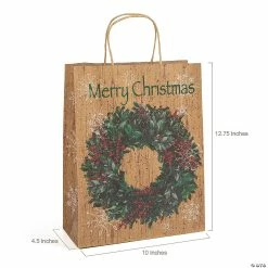 Buy ๐ 10″ x 4 1/2″ x 12 3/4″ Large Holiday Wreath Kraft Paper Gift Bags – 12 Pc. ๐งจ