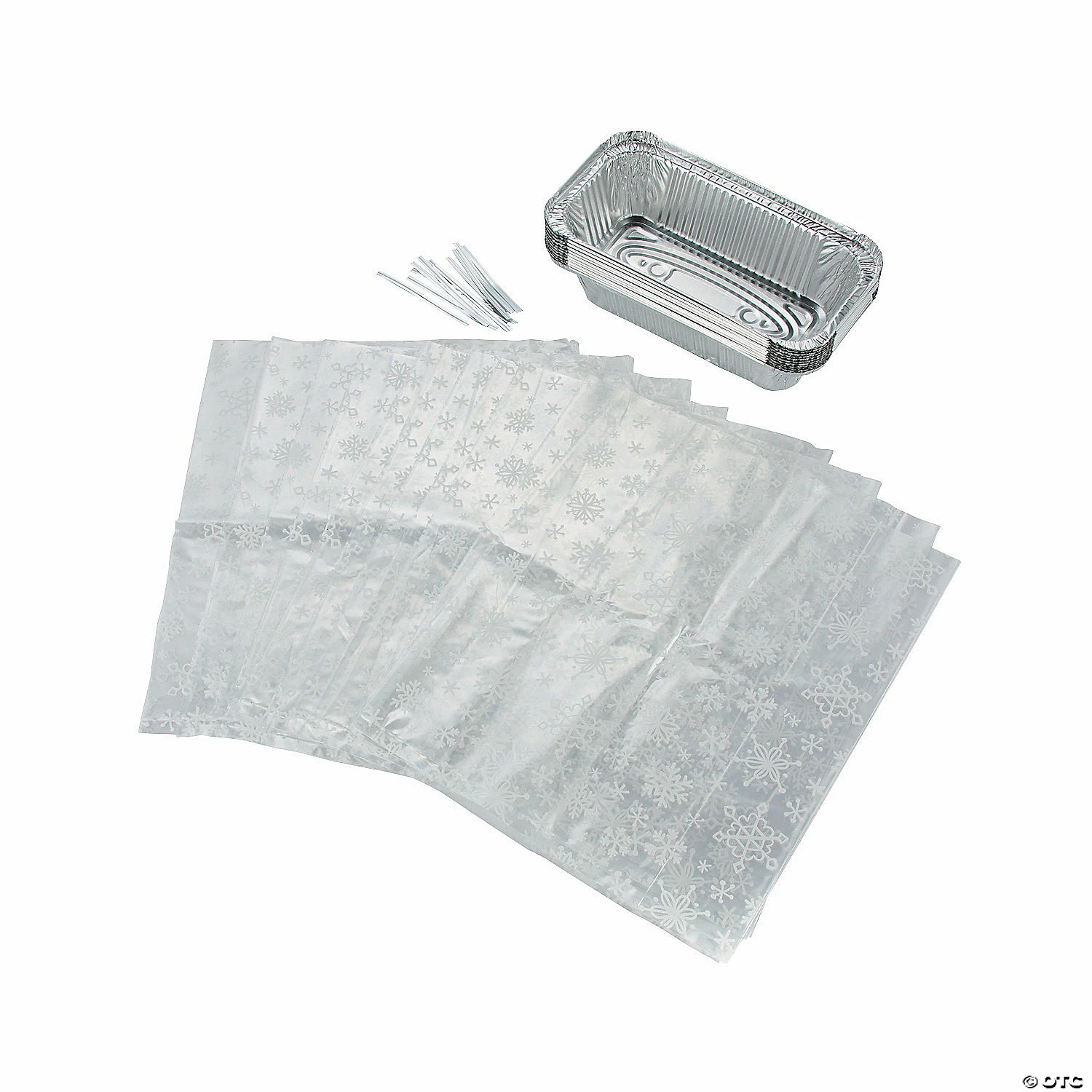 Everybody loves holiday treats, and what better way to share the baking love than packaging your goods in these festive containers? Simply fill the aluminum bins with bread, cookies and other holiday snacks, slip the bins into the cellophane bags adorned with pretty snowflakes and keep the tasty goodness fresh by tying it all together with the included silver twist ties. Friends, family and neighbors alike will love these thoughtful, yummy Christmas gifts! Metal. Tin foil containers, 8″ x 4″ x 2″; cellophane bags, 11″ x 4 1/2″ x 9 1/2″. Ties not included.